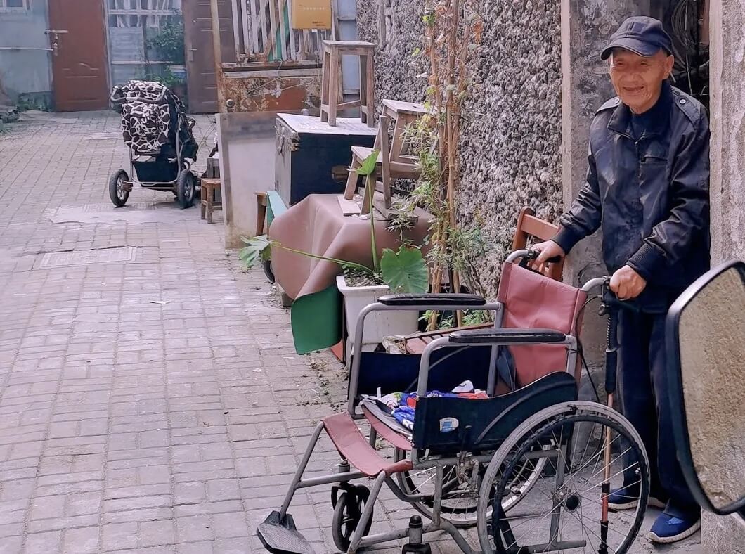 等天色渐晚,老许便去厨房盛了粥,送到坐在轮椅上的父亲面前,给他领口垫上一张手绢,开始一口一口地喂起来。“他牙齿没了,只能吃流食,我就每天给他做点粥。还是希望老头子健健康康的。”一边说着,老许一边替父亲擦去嘴边的残渣。