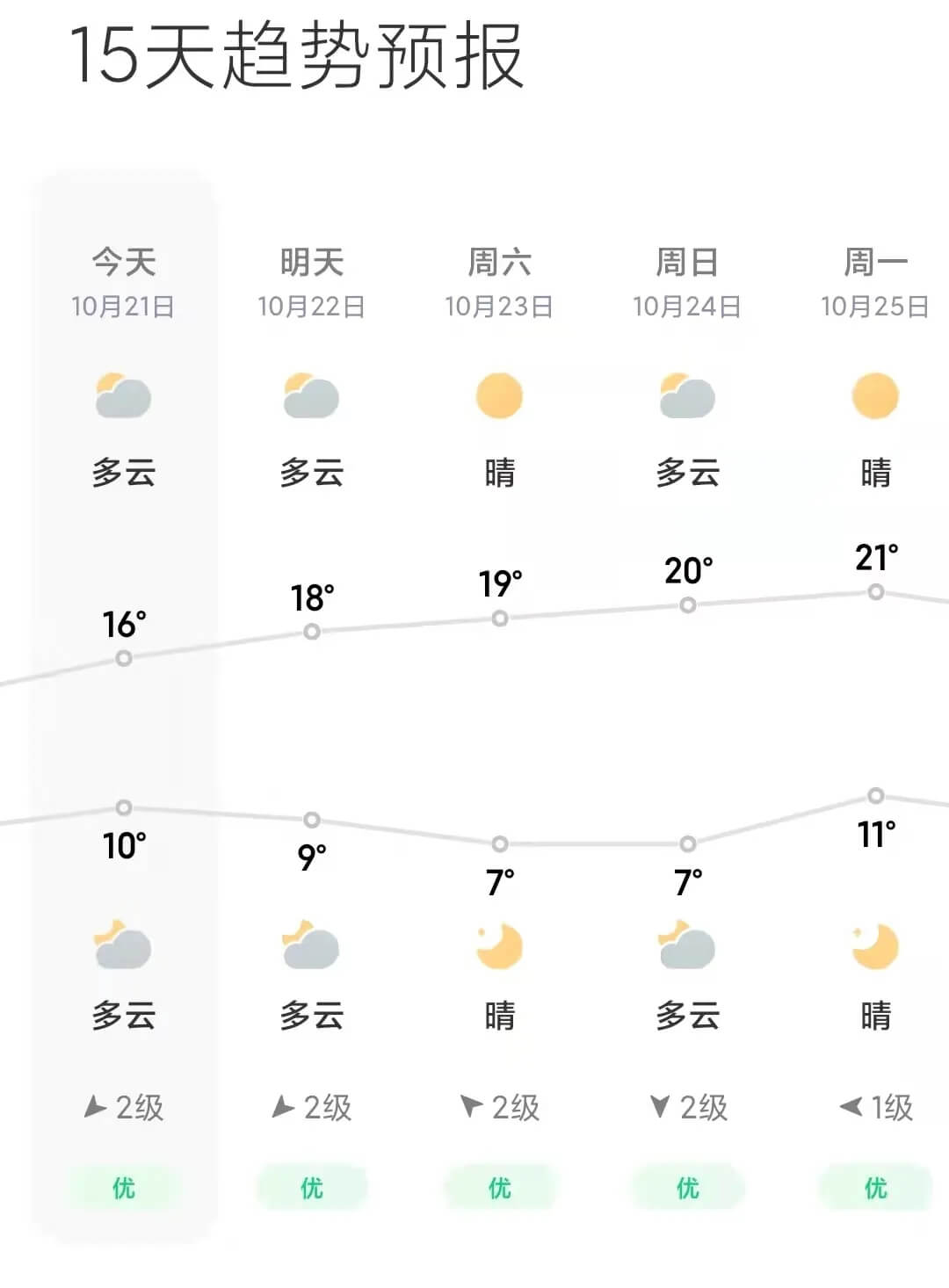从天气预报上我们可以看到前两天温度很低,大家肯定都穿棉袄了,稳妥妥的冬天,但是今天开始气温又回升了,到下周一最高气温有21度,这不就是传说中秋天的温度吗?