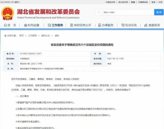 然后中心城区和新城区还有一个最大的区别,就是武汉市6个新城区享有15个事项定价权限,可以自行定价。