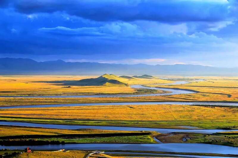 而奔腾的黄河一路浩浩汤汤,却碰巧在诗仙李白的出生地四川,拐了个弯儿,黄河从发源地一路斗折蛇行,来到四川“串门”后,便又折向西北,在这几乎180度的折返中,在四川省阿坝藏族羌族自治州若尔盖县唐克镇形成了荡气回肠的“黄河九曲第一湾”。