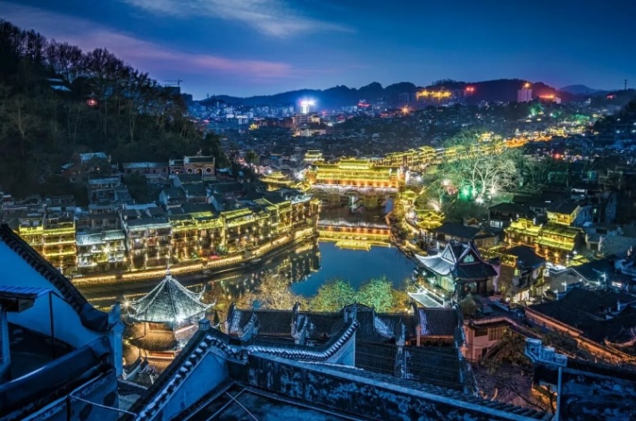 踏着细雨洗亮的青石板,坐上弯如新月的小船,回首那灯火璀璨的吊脚楼,一瞬间,竟分不清是画在眼前,还是身在画中。