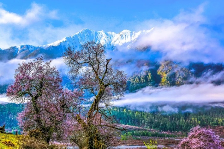 三月春雨霏霏,抚绿了杨柳,染红了桃花,西藏林芝也迎来了一年中最浪漫的时刻。