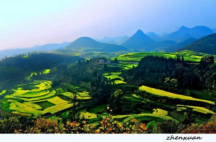 D2日,早上金鸡峰丛看日出,游览油菜花海,下午罗平到丘北普者黑,住普者黑村。