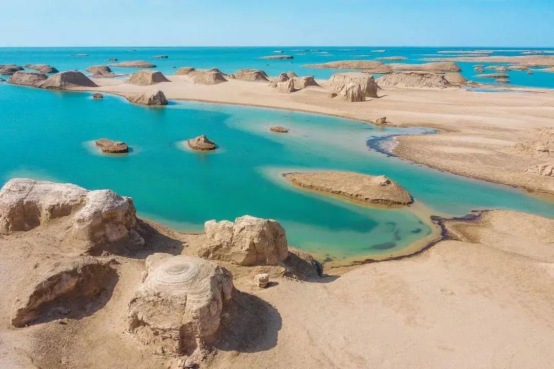 一望无际的荒漠中凭空而出一片汪洋,独一无二的存在,魔幻而神秘;