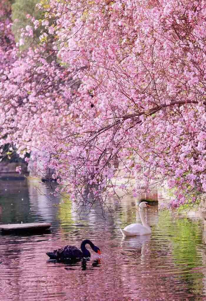 因此,樱花盛开时繁花似锦的画面